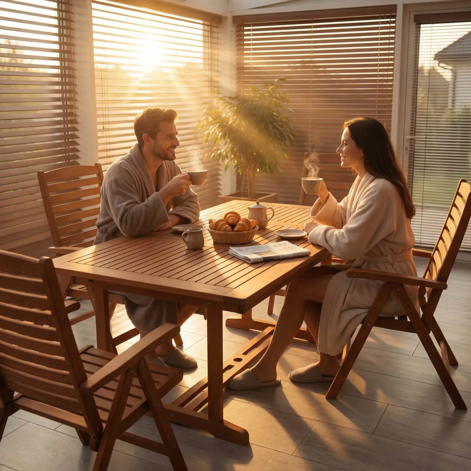 Integrierte Sonnenschirm-Öffnung: Ein praktisches Loch in der Tischmitte ermöglicht das einfache Aufstellen eines Sonnenschirms für heiße Sommertage.