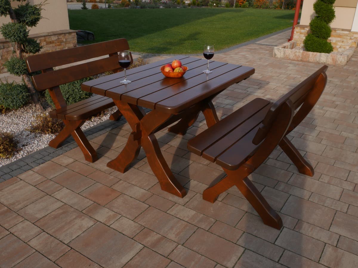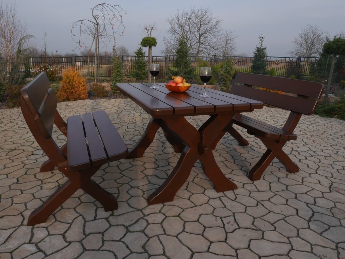 Unser Gartenmöbel Set Exklusiv ist eine Variante für eine größere Familie. Die Gartenmöbel sind komplett aus Erlenholz hergestellt und sind sehr massiv. Dieses Gartenmöbelset ist imprägniert und ist gegen Witterungseinflüssen gut geschützt. Gartentisch Bänke sind eine perfekte Lösung für Menschen, die die Einfachheit der Stil, Eleganz, Komfort, sowie die höchste Qualität und Haltbarkeit des Produkts zu schätzen wissen. Die Sitzflächen der Bänke und Stühle sind sanft profiliert, was sie äußerst bequem und angenehm für das Auge macht. Hier finden Sie Informationen zur Pflege und Bedienungsanleitung