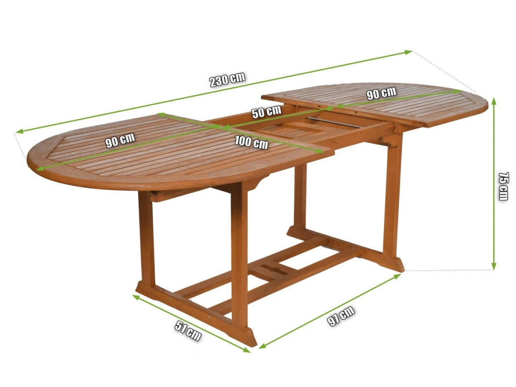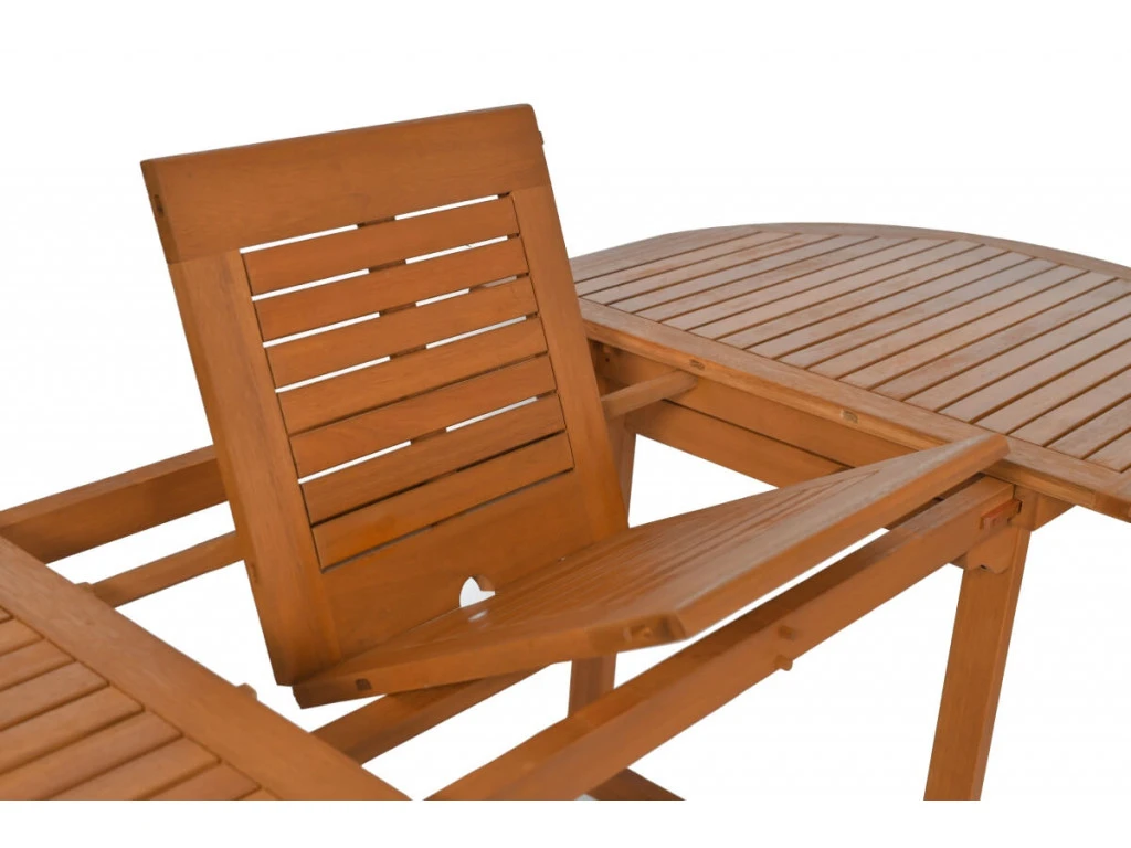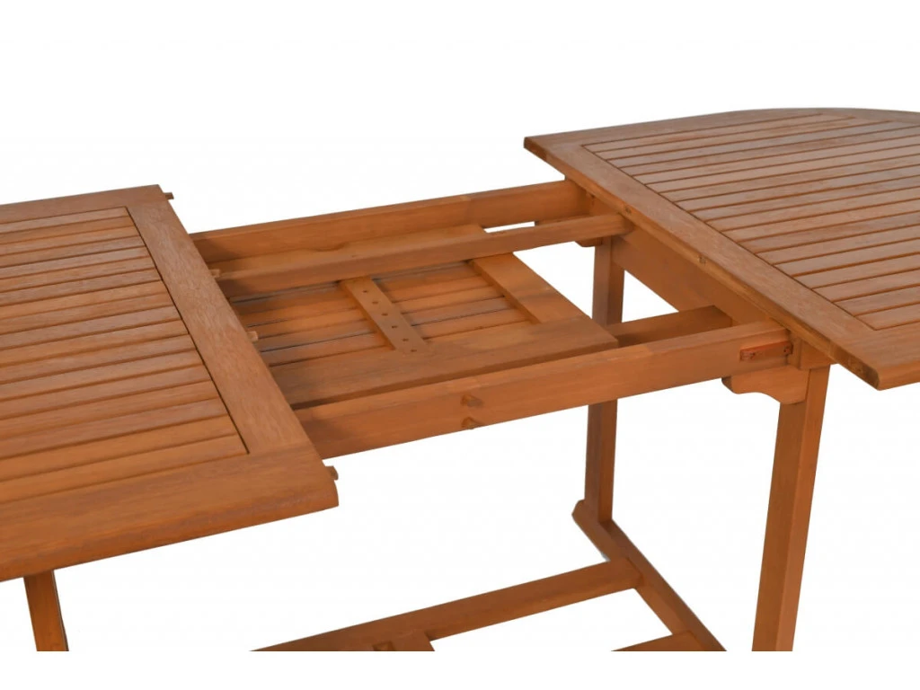 Der Gartentisch 8 Personen TOLEDO ist durch klassische Schönheit und elegante Holzmaserung gekennzeichnet. Schöne, rotbraune Farbe des Eukalyptusholzes komponiert sich ideal mit der grüner Umgebung Ihrer Gärten. Die wichtigsten Merkmalen von ausziehbarem 8 Personen Tisch TOLEDO ist nicht nur die Holzart. Dieses Produkt hat viele praktische Funktionen. Es ist nämlich ausziehbar, so dass man seine Länge bei Gästen besuchen schnell ausdehnen kann. Gartentisch 8 Personen TOLEDO hat auch ein Schirmloch. Es ist besonders wichtig, wenn Ihr Garten direkt in der Sonne liegt und kaum Schatten hat.