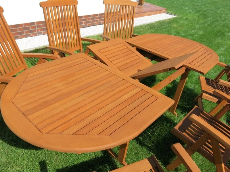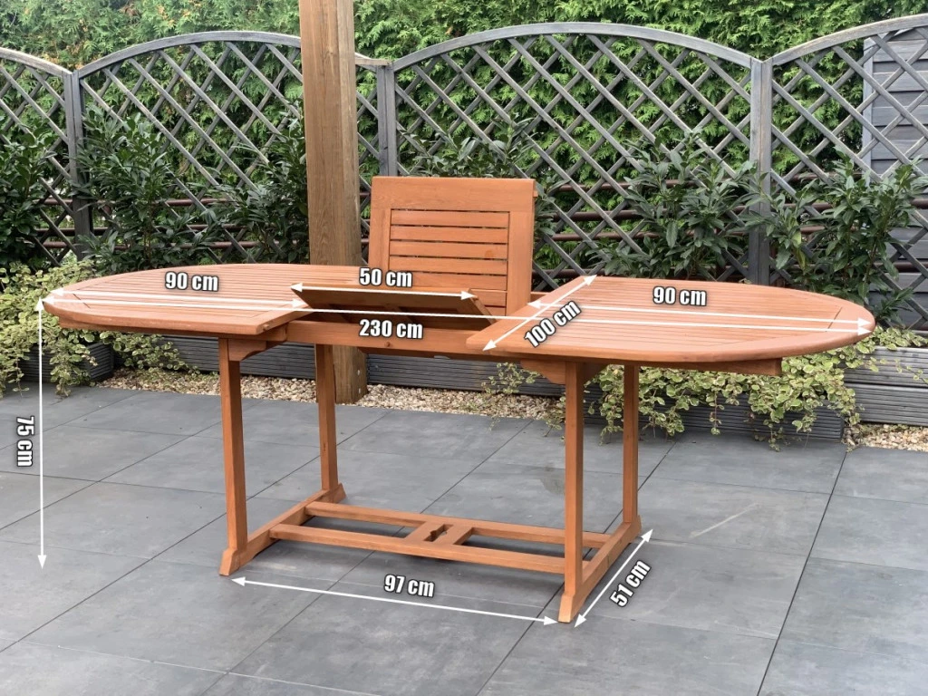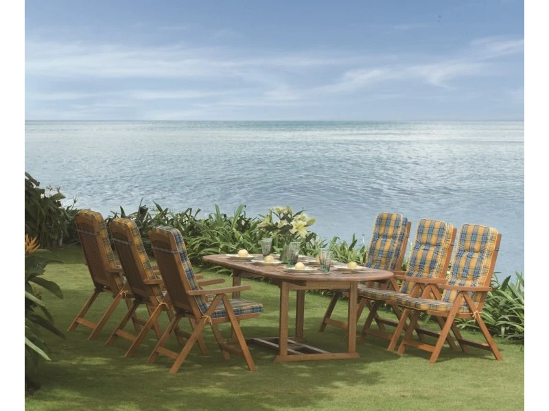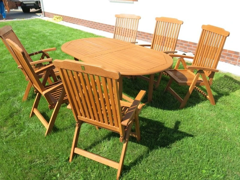 Der 8 Personen Gartentischset oval TOLEDO besteht aus FSC-zertifiziertem Holz. Er ist mit speziellem Öl behandelt und ist somit wasserabweisend, UV-beständig und gegen Pilzbefall resistent. Die Ölbeschichtung ist eine Art der Imprägnierung. Es lohnt sich, Gartentisch 8 Personen einmal im Jahr mit der Ölschicht zu behandeln. Auf diese Weise verlängern Sie die Lebensdauer und die Nützlichkeit dieses schönen Gartenmöbels. Bei Mercurius Onlineshop finden Sie ein reiches Angebot an Gartenstühlen und Auflagen, die mit diesem 8 Personen Gartentischset oval ein schönes Ganzes bilden.