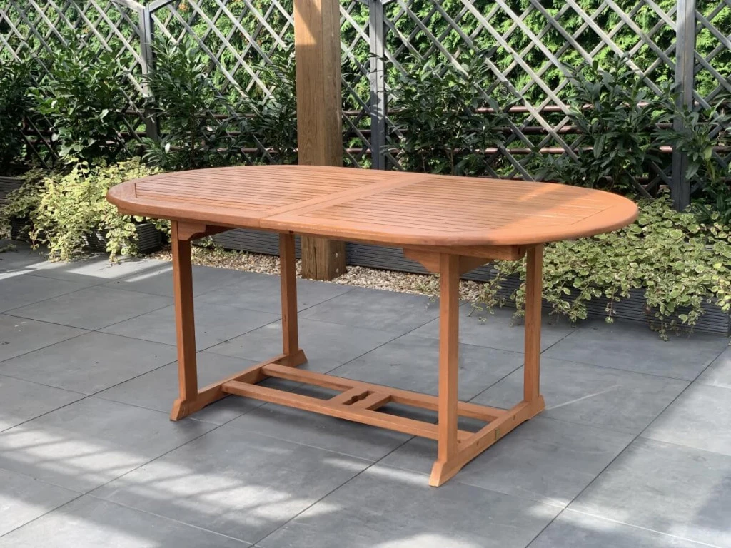 Ovale Gartentische sind besonders beliebt, da sie die gemütlichen Eigenschaften eines runden Tisches mit dem großzügigen Platzangebot eines rechteckigen Modells verbinden. Es gibt keine harten Kanten, an denen man sich stoßen könnte, und alle Gäste sitzen kommunikativ beisammen. Über den leichtgängigen Ausziehmechanismus können Sie die Tischplatte in Sekundenschnelle vergrößern, sodass bis zu 8 Personen komfortabel Platz finden.