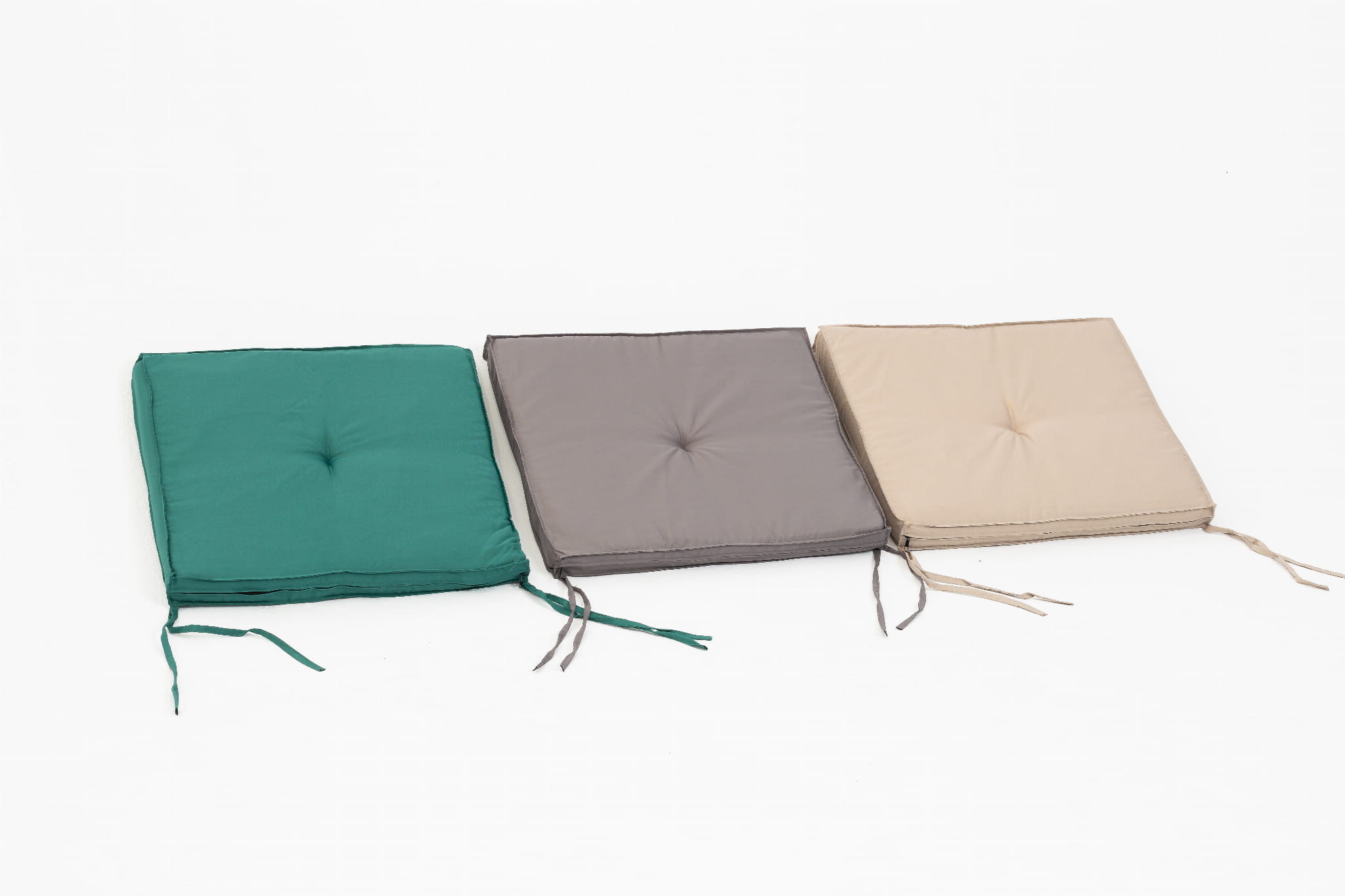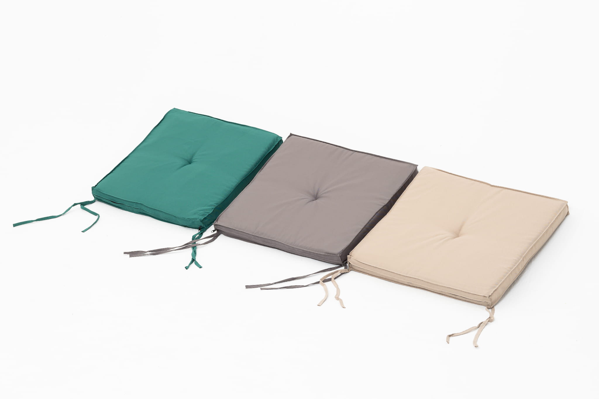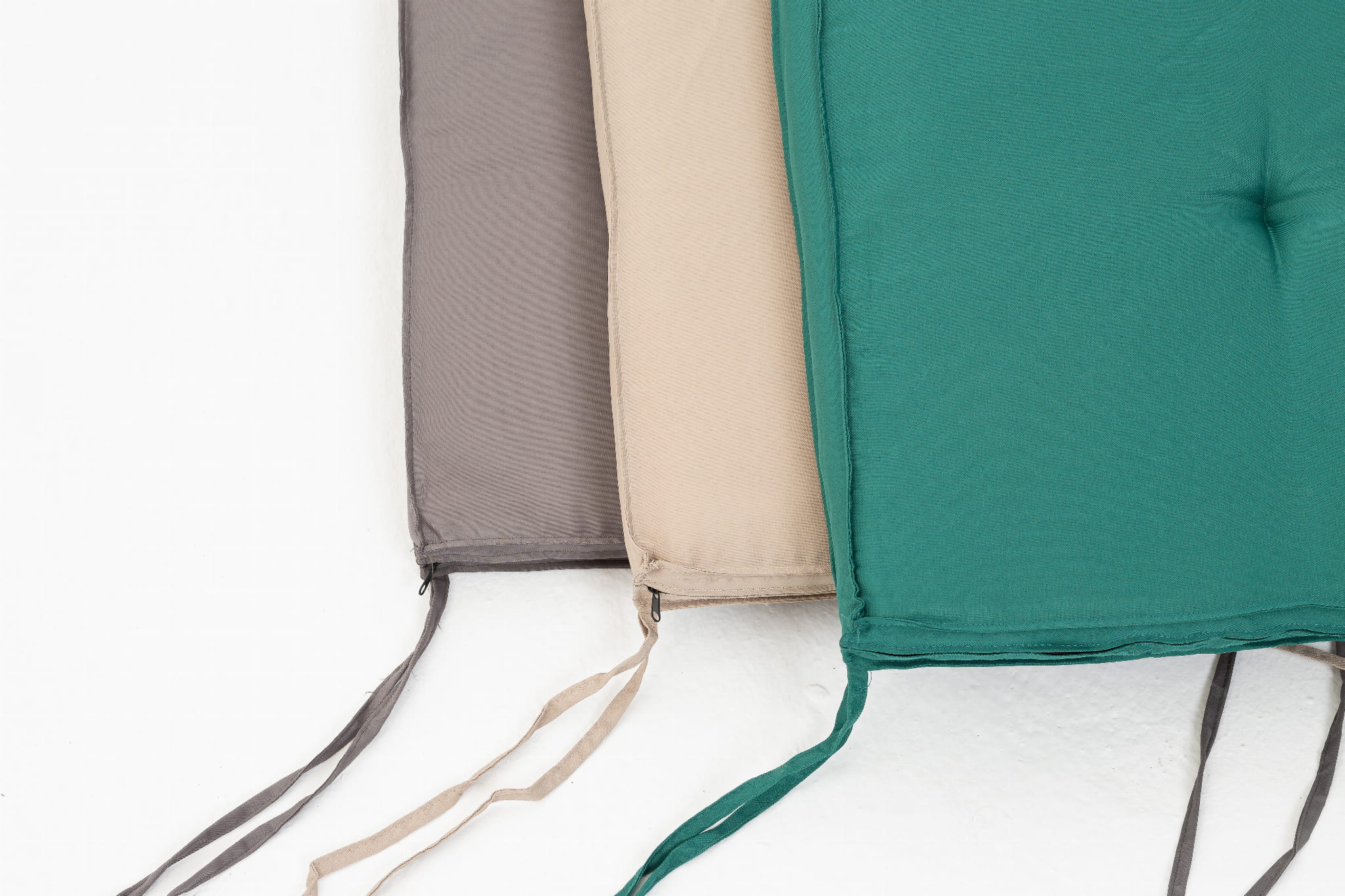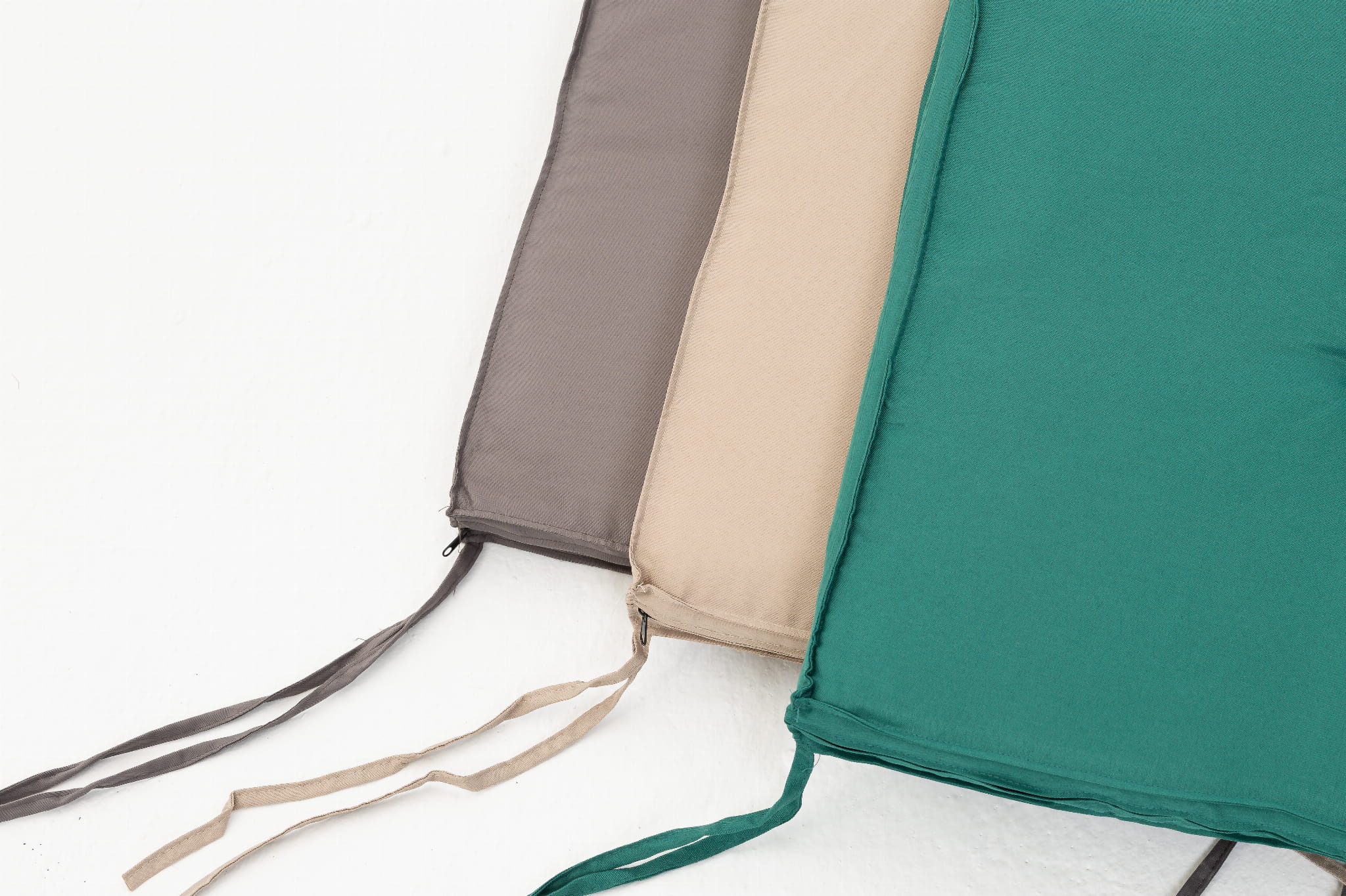 Unsere Sitzkissen Outdoor ist in drei modernen Farben erhältlich - grün, beige und grau. Sie ist aus strapazierfähigem, wasserdichtem Polyestergewebe hergestellt. Jeder Kissenbezug hat einen diskret versteckten Reißverschluss, sodass er bei Bedarf entfernt und gewaschen werden kann. Unsere Sitzkissen haben eingenähte Schnüre, dank derer sie auch bei starkem Wind immer auf dem Stuhl bleiben. Diese Gartenstuhlauflagen sind mit dem Schaumstoff von einer Dichte von 23 kg / m3 gefüllt.